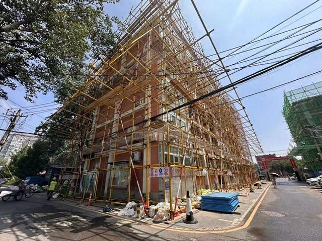 每个正在改造施工的楼下,都配备了三个卫生间,两个淋浴间。此次改造涉及的大多是五六层高且没有电梯的楼房,加上居民中老人占比大,一次次下楼取水太折腾,为此,社区与施工方积极沟通,在正改造上下水的单元安装了临时水管、水盆,方便居民使用。“楼道比较窄,我们也是想了很多方案,最后在每楼层的拐角处安装了取水点。”施工方工作人员说。临时安装的“小水盆”用施工现场物品改造而来,长30厘米,带有水龙头,既环保又可以满足居民简单洗漱、洗菜做饭的用水需求,同时还不会对日常通行产生阻碍。施工方还为行动不方便的老人准备了体积小、适合在家中使用的便携马桶,老人的如厕难题解决了,改造施工得以顺利进行。