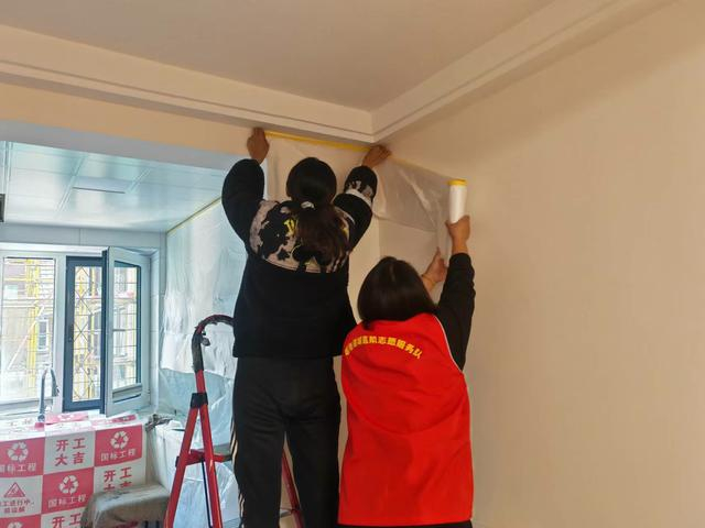 社区工作人员为居民做旧改前的房屋保护工作