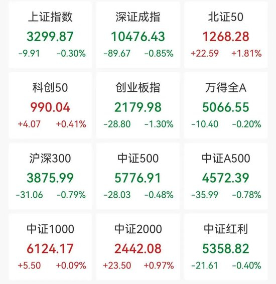 A股主要指数表现分化 北证50指数走强