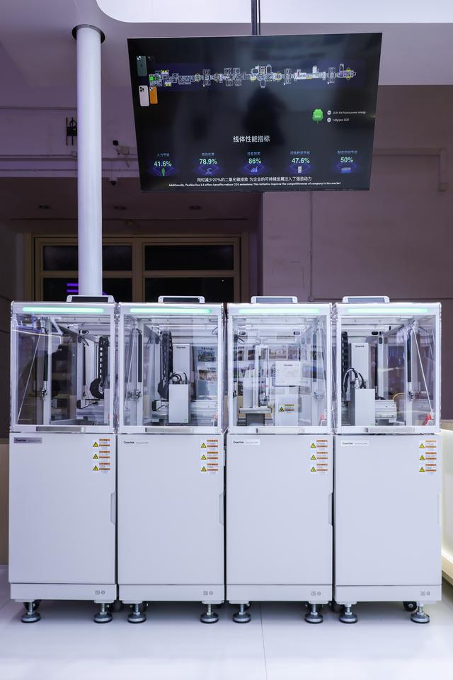 领益智造作为苹果公司的关键部件制造商,此次展示了其自主研发的高精度组装技术和环保回收工艺。其自主研发的自动引导车搭载6轴机械手臂,配合视觉和六维力控技术,完成了领益徽标的高精度组装,展现了其在智能制造领域的领先实力。