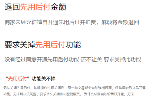 近日一些平台推出的“先用后付”新“玩法”遭到消费者吐槽,引发关注。很多消费者反映,自己默认的付款方式莫名其妙变成了“先用后付”,不用输密码、刷脸或刷指纹确认就直接下单了。有的消费者只是想收藏商品或先添加到购物车,方便比价和统一结算,却变成了直接下单;也有消费者根本不知道以“先用后付”的方式购买过商品,驿站里都是自家包裹不说,后续还产生了违约金和逾期费用。