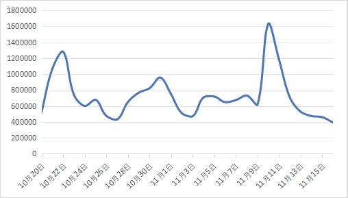 10月20日至11月16日共计28天监测期内,共收集到“消费维权”相关信息20176208条。数据分析显示,“双11”期间,在更多优惠、更充足的思考时间之下,翻车的直播、出问题的产品、麻烦的售后、再度复杂的规则,消耗着消费者的信任。