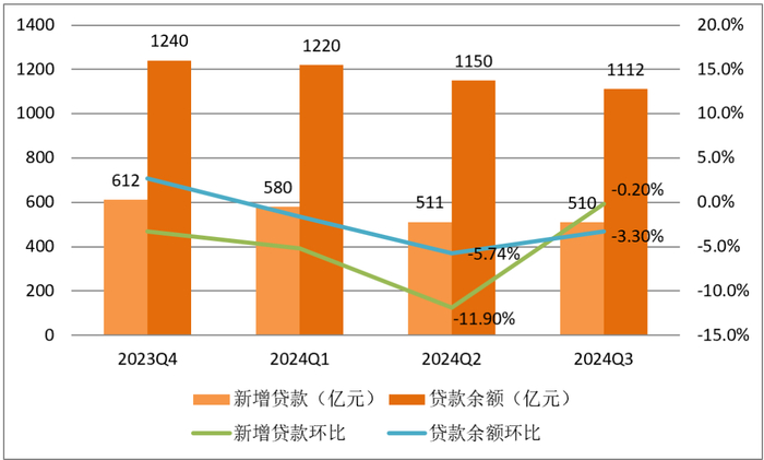 图1:2023Q4—2024Q3乐信新增贷款及贷款余额变化情况