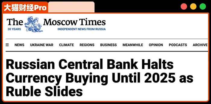 这两天,俄罗斯传来大消息,他们央行说了,暂停在国内市场购买外汇。