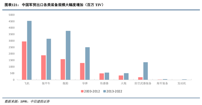 军贸出海:中国军贸方兴未艾,市占率有望快速提升。