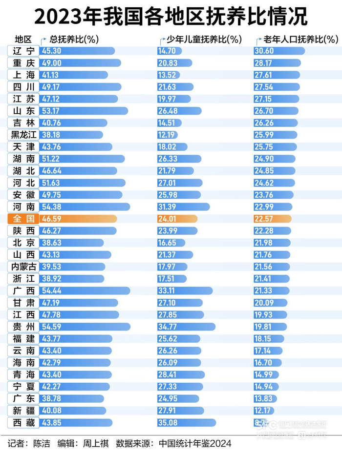 中国老龄化报告:老年抚养比18连升,广东、浙江、北京人口红利凸显丨高质量发展数据密码③