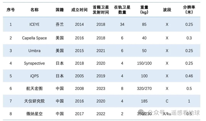 全球主要小卫星SAR盘点