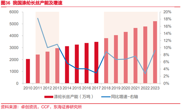 4.1涤纶长丝:海内外需求互补,产能增速重回低位