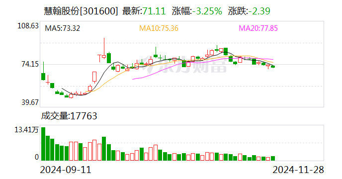 2024年前三季度,慧翰股份实现收入7.35亿元,归母净利润1.35亿元。