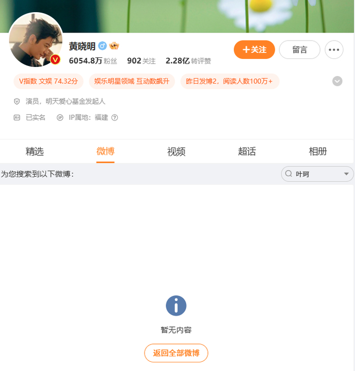 黄晓明删除与叶珂官宣恋情博文