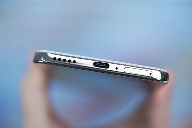 手机顶部和底部细节一览,配有扬声器、降噪麦克风、SIM卡槽、USB-C端口。