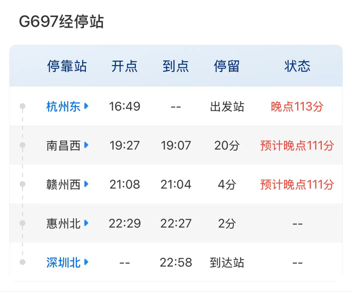 今天下午,都市现场记者康康从南昌出差前往赣州时,发现G697次高铁出现严重晚点情况。