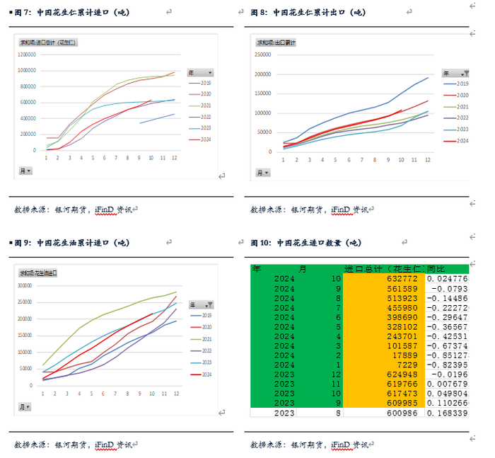 2024年10月花生仁进口7.1万吨,高于去年0.75万吨,其中苏丹进口6.8万吨,塞内加尔进口0.05万吨,1-10月花生进口总量63.3万吨,高于去年同期2.5%。1-10月累计出口花生仁10.8万吨,同比增57%。今年允许尼日利亚进口花生,该国产量450万吨,远超塞内和苏丹,预计进口量后期会增加。进口苏丹花生价格在7600元/吨,比11月初有所上涨。