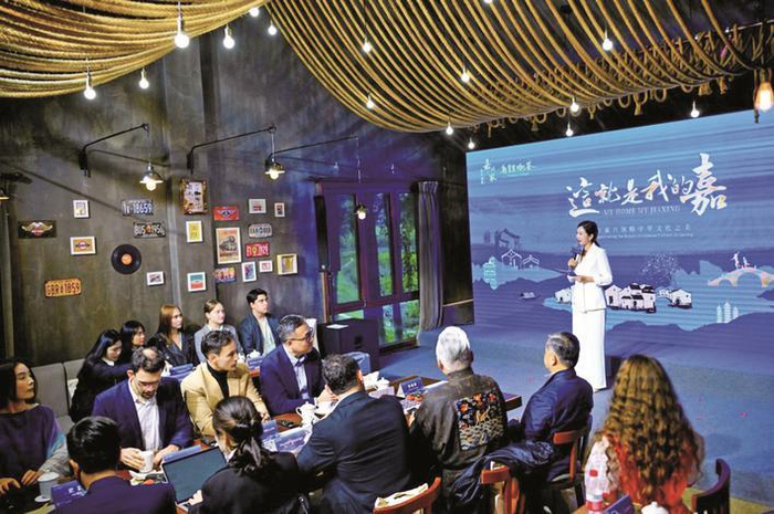乌镇乌村村口咖啡厅,乌镇峰会开幕当天,“这就是我的嘉”国际传播咖荟正在举行,14个国家的留学生、外企高管外籍博主畅谈他们的嘉兴故事。有趣的是,有三位外籍嘉宾都用“fu”来形容自己眼中的嘉兴,full、丰富、福。