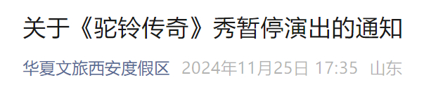 近日,华夏文旅西安度假区发布通知,会跑的实景演艺《驼铃传奇》秀2024演出季因部分设备维护与升级,将于2024年12月2日-12月20日停演。期待12月21日《驼铃传奇》秀与大家的再度邂逅