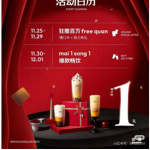近日,古茗发布预告,将在11月30日正式开启冬季爆品“买一送一”活动。11月30日至12月1日期间,在古茗门店堂食或者小程序下单指定饮品,即可免费享受同等价位的饮品一杯。