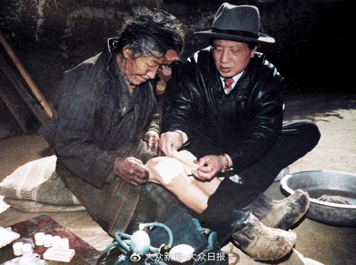 座谈中,有群众说一个人病了,孔书记就出来看病。孔书记曾学过医,医术不错,连续给几个病人看了病。座谈结束后,孔书记又说去给远处帐篷里的病人看看,结果一去就是一个半小时,到傍晚七点才回来。