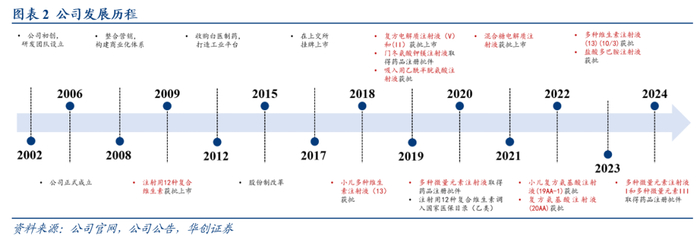 卫信康正式成立于2006年,业务最早可追溯至2002年,早年公司专注于药品研发,通过业务合作和技术转让实现研发成果的产业化,并通过区域经销模式构建覆盖全国的销售网络。2012年公司收购内蒙古白医制药,打造工业平台,成为研产销一体化开端。2015年公司进行股份制改革,2017年于上交所挂牌上市。公司深耕肠外营养用药领域,在复合维生素类、静脉微量元素类、静脉电解质类等领域具备显著优势,核心产品注射用多种维生素(12)(简称成人十二维)在国内常年保持较高市占率。