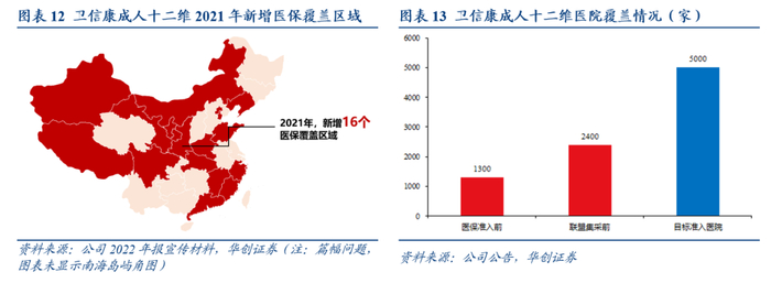 成人十二维于2020年12月被直接调入国家医保目录乙类,2021年3月结果正式执行,产品新增加了山东、辽宁、北京、河南等十余个省市地区的医保覆盖。调入国家医保后,公司采取扩容、挖潜并行策略,营销团队强化销售渠道建设,加大学术推广力度,在原有覆盖医院约1300家的基础上,积极加快医院推广,根据2023年中报,在河南联盟集采前公司已覆盖约2400家医院,且主要为二级及以上医院。而公司对成人十二维规划的目标医院约5000家,目前仍有较多医院覆盖工作需要进行。