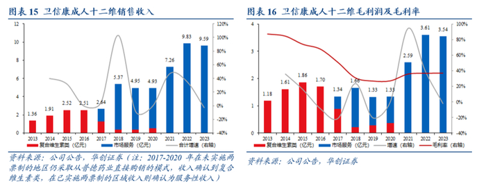 首先,核心产品成人十二维迎来新一轮景气周期。我们认为,市场目前对成人十二维存在较大的认知偏差,尽管在2023年河南十九省联盟集采中降价超50%,但作为一款准入国家医保仅四年的产品,成人十二维在国内的推广和渗透空间还非常大,而集采则恰恰有助于加快其在医院的准入和放量,并且考虑到集采区域明显的市场成本优化,集采后成人十二维毛利率快速提升,整体收益端将会有更好表现。2024年上半年在部分集采省份尚未执标的情况下,成人十二维的销量增长近20%,毛利率提升7.6%,服务性收益也已恢复增长,预计这一趋势将随着集采结果全面执行后得到进一步强化,从而带动成人十二维进入新一轮经营质量更高的景气周期。