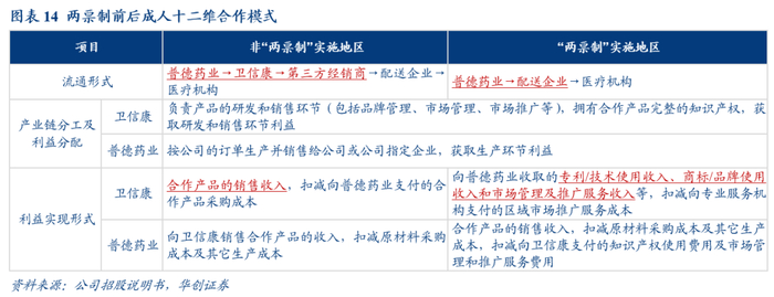 两票制前,公司成人十二维采用了与普德药业合作的模式,即由普德药业在公司的技术支持下申请成人十二维的生产批件并进行生产,公司从普德药业购入成品,并经区域代理商销售给终端流通企业,公司实际上承担了成人十二维的全国独家总代工作。