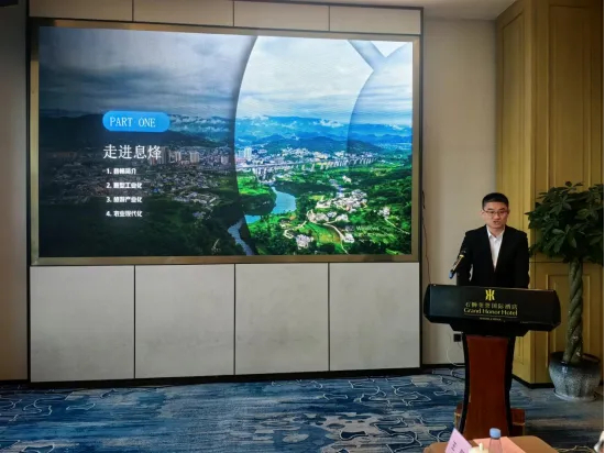贵阳市息烽县人民政府副县长丁晓光进行推介,详细介绍了贵阳息烽县是贵州省、贵阳市着力打造的新能源电池及材料产业核心区、贵阳贵安中高端制造业核心配套区、贵阳贵安红色文化和避暑康养旅游目的地、乡村振兴示范县、贵阳贵安农村综合改革示范县。丁晓光进一步介绍了息烽承接发展纺织印染产业的诸多优势:“强劲有力的政策机遇、配套完善的产业园区、交通物流的比较优势、项目实施的支持保障、注重贵人服务的营商品牌”等。