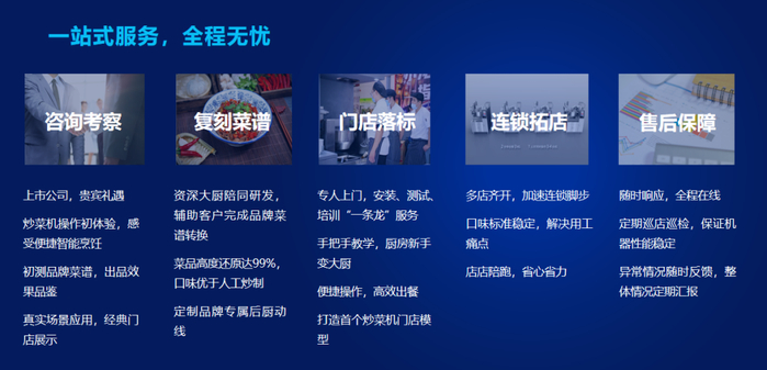 厨纪不仅关注烹饪过程的高效与智能,更重视方案的实用性与可操作性,确保客户能够轻松上手。从机器安装测试、培训教学到辅助复刻品牌菜谱,皆安排专人上门服务,定标、落标、连锁复制,一站式服务,全程陪跑;帮助客户后厨快速实现智能化、标准化转型升级,实现敏捷交付。