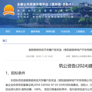 11月22日,贵阳市公共资源交易中心发布云岩区小关片区城中村改造(偏坡安置房)配套基础设施项目设计、施工总承包(EPC)招标公告。