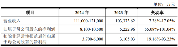 联芸科技预计2024年度实现营业收入111,000万元至121,000万元,变动幅度为7.38%至17.05%;归属于母公司股东的净利润8,100万元至10,500万元,变动幅度为55.08%至101.04%;扣除非经常性损益后的归属于母公司股东的净利润为3,700万元至6,000万元,变动幅度为19.16%至93.23%。