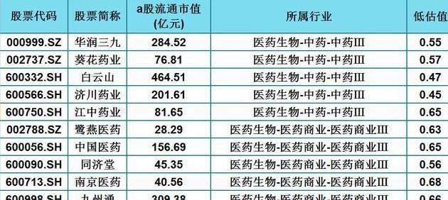 医药领域中60只质地优良的潜力股,其中前30只分别为:华润三九、葵花药业、白云山、济川药业、江中药业、鹭燕医药、中国医药、同济堂、南京医药、九州通、上海医药、柳药股份、科华生物、达安基因、鱼跃医疗、蓝帆医疗、九安医疗、尚荣医疗、奥美医疗、乐普医疗、理邦仪器、宝莱特、戴维医疗、迪瑞医疗、美康生物、英科医疗、万东医疗、山东药玻、新华医疗、振德医疗。