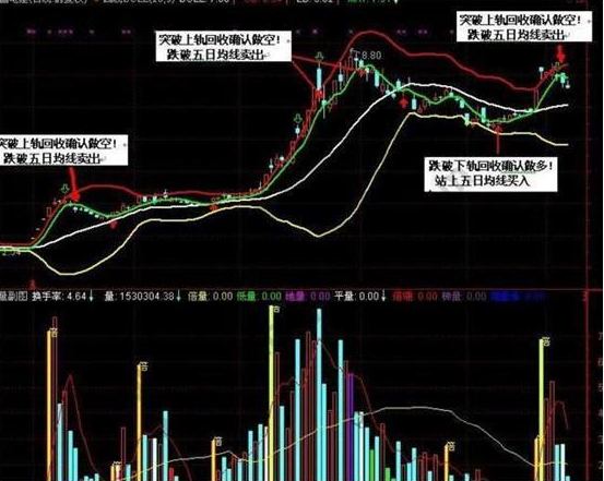 2、当k线走到布林带上轨后向下跌破5日均线的时候,投资者应该立即进行止损操作,卖出获利;