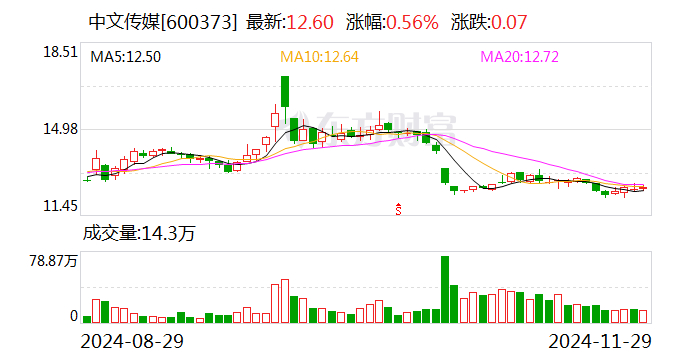 2024年前三季度,中文传媒实现收入67.52亿元,归母净利润7.28亿元。