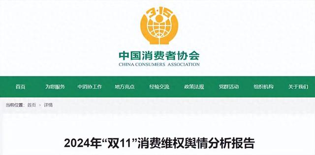 11月28日,中消协发布2024年“双11”消费维权舆情分析报告。