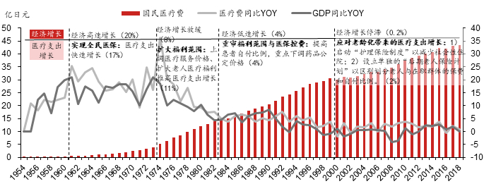注:括号内分别为各阶段GDP增速CAGR和医疗支出增速CAGR