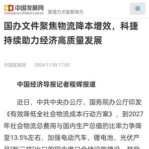 神州控股(00861.HK)旗下智慧供应链品牌科捷,以其先进的技术应用于供应链物流持续升级,推动社会物流成本下降与产业经济高质量发展,引起了多家媒体及权威组织的广泛关注。其中,国家发展和改革委员会主管、中国发展改革报社主办的《中国发展网》报道如下: