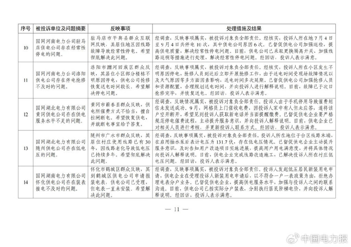 国家能源局通报10月份投诉举报办理情况及典型案例
