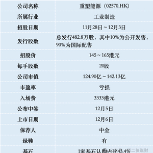 港股打新——重塑能源IPO,股价稳住就能进港股通