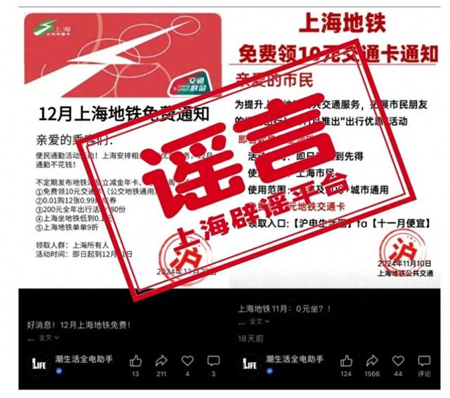 近日,“12月上海地铁免费坐”等消息在短视频平台热传,对此,上海公共交通卡公司通过公众号辟谣,具体内容如下: