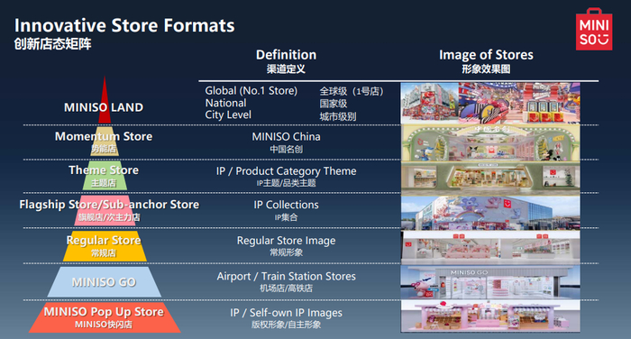 上个月,名创优品宣布将划分为MinisoLand、中国名创、主题店、旗舰店、常规店、MinisoGo、快闪店等层级。