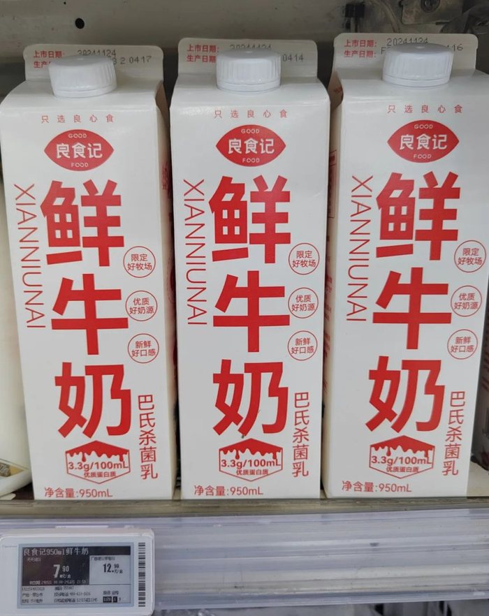 良食记鲜牛奶作为物美集团自有品牌的乳制品代表,通过与优质奶源基地合作,甄选纯种荷斯坦牛,科学喂养营养均衡,逐本溯源确保牛奶的新鲜度和品质;同时采用先进的杀菌技术和包装工艺,保持了其原有的风味和营养成分。良食记鲜牛奶以亲民的价格提供了新鲜和具有丰富的营养价值的高品质乳制品选择,满足了消费者对健康饮品的需求。
