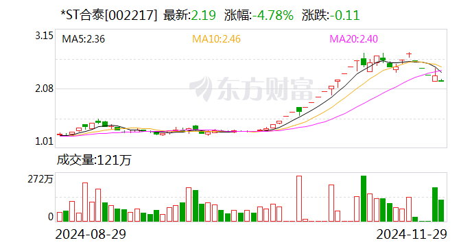 *ST合泰签署重整投资协议 认购价1.3元/股