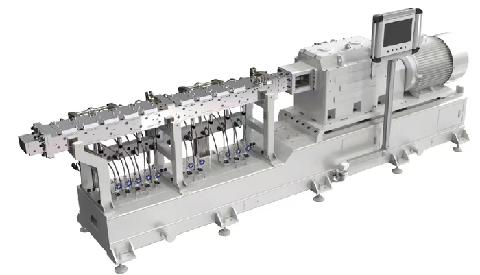 干法工艺对传统金属设备磨损较大,尤其在固态电池应用时硫化物材料对金属设备有腐蚀,后续维修、更换成本以及金属碎屑对电芯性能影响较大。而该产品的双螺杆内腔、螺纹元件做到了全陶瓷化,无金属异物引入,磨损量为镍基合金的1/10,高耐磨、耐腐蚀。另外机筒采用翻盖结构设计,翻转机筒盖≥60°,设置翻转防呆装置;便于清理内腔及螺纹元件维护。