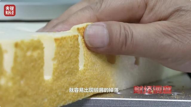 检测中心高级工程师张望则表示,乳胶床品生产过程中工艺不成熟,硫化不到位,会导致产品内部孔洞比较大,或者是塌泡,造成乳胶枕头和乳胶床垫在使用一段时间后出现塌陷,恢复不到原来的情况。乳胶枕头或者是床垫,轻轻一触碰就容易出现碎屑的掉落。一个原因是内部的填料加得过多,第二个是防固体系不够。