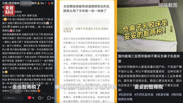 除了关于电商平台、直播平台的投诉,《财经调查》记者还发现,有不少消费者投诉的乳胶产品,都是在跟团出游期间被导游带到景区的购物店购买的。