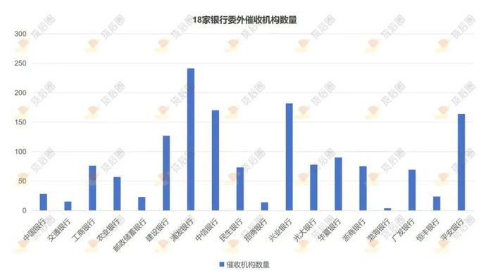 据统计,18家银行委外催收机构具体数量如下: