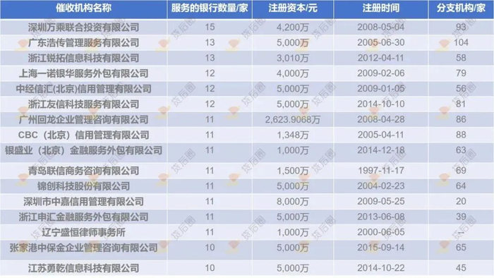 21家催收公司被十余家银行选择