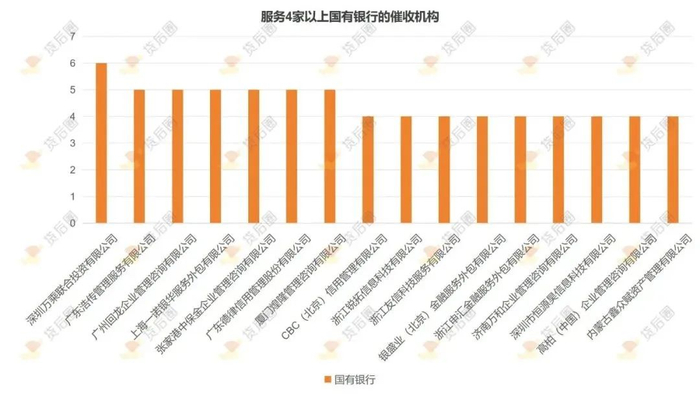 除了催收“大户”,一些催收公司在国有银行服务榜单上脱颖而出,6家国有大行中至少有4家与其建立了合作。