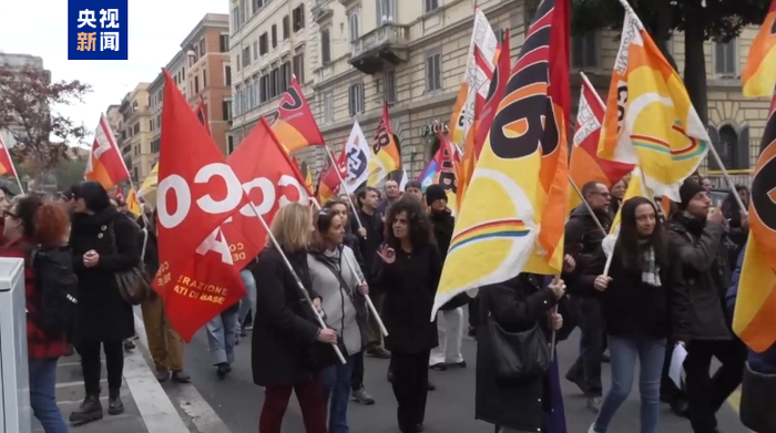 当地时间11月29日,意大利多个工会组织发起全国性大罢工和多场游行示威活动,要求意大利政府增加公共服务投入,提高居民收入水平。