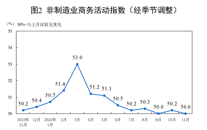 11月官方制造业PMI为50.3%,比上月上升0.2个百分点