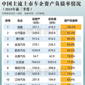 2025年车企价格大战重新来袭,在负债表上排名靠前、在利润表上排名靠后的这些车企,负债很高,亏钱卖车,在明年大概率会出现生存危机。